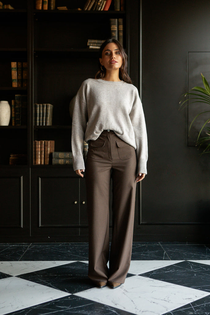 Jersey de cuello redondo y manga larga. Acabados en rib.