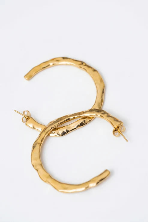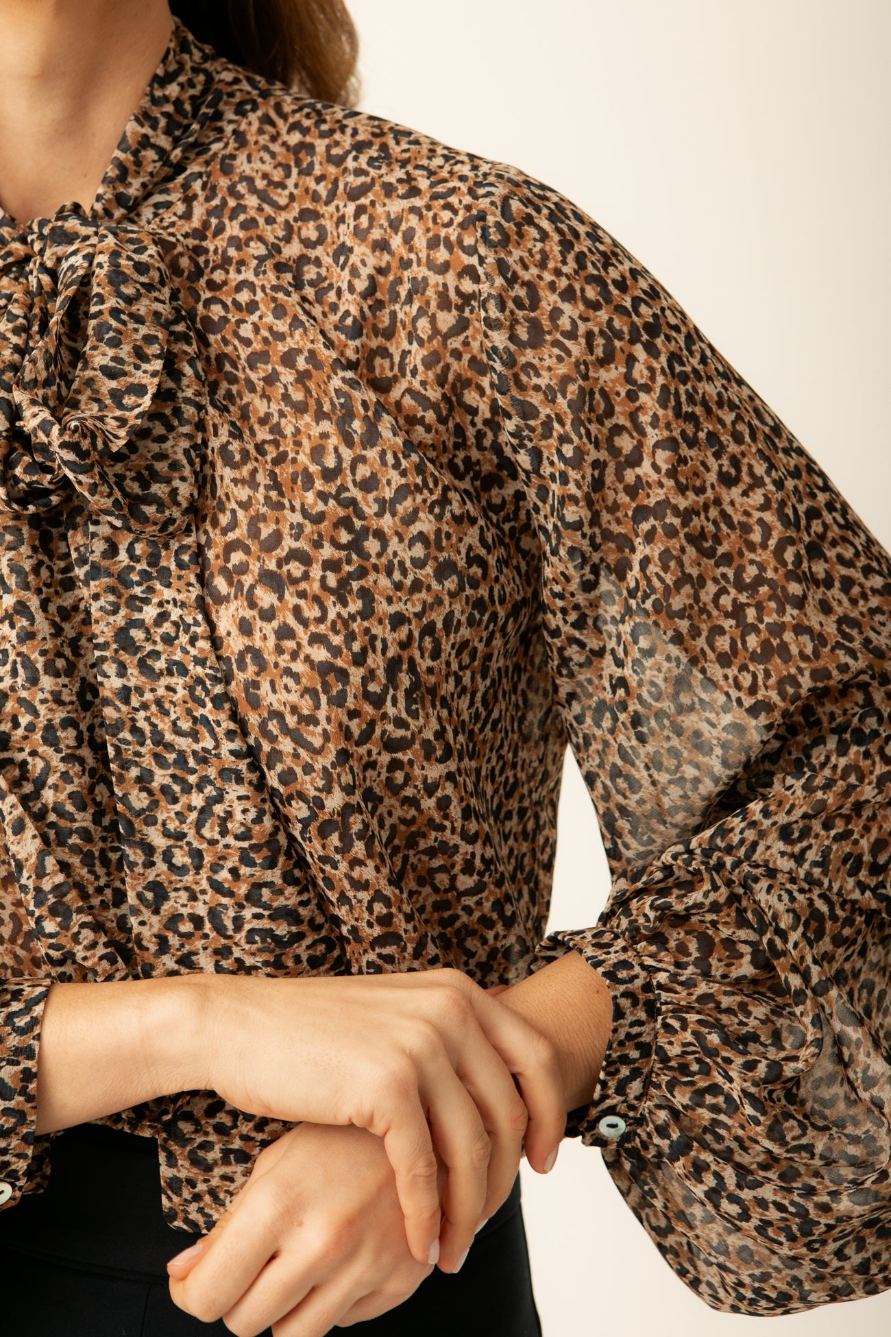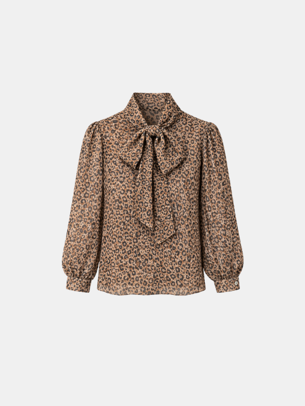 La blusa Catherine presenta un estilo mucho más cañero por su llamativo estampado animal print, que aporta personalidad a la prenda. Un patrón desenfadado y versátil en el que destacamos una lazada multiposición en el cuello, que le da un toque clásico y elegante al diseño; Eleva tu look con los aros Fátima de dosprimeras, una joya juvenil con un toque clásico y vintage, gracias al efecto martelé tan característico de la marca de joyas, que puede alcanzar a un estilo de mujer más adulta.