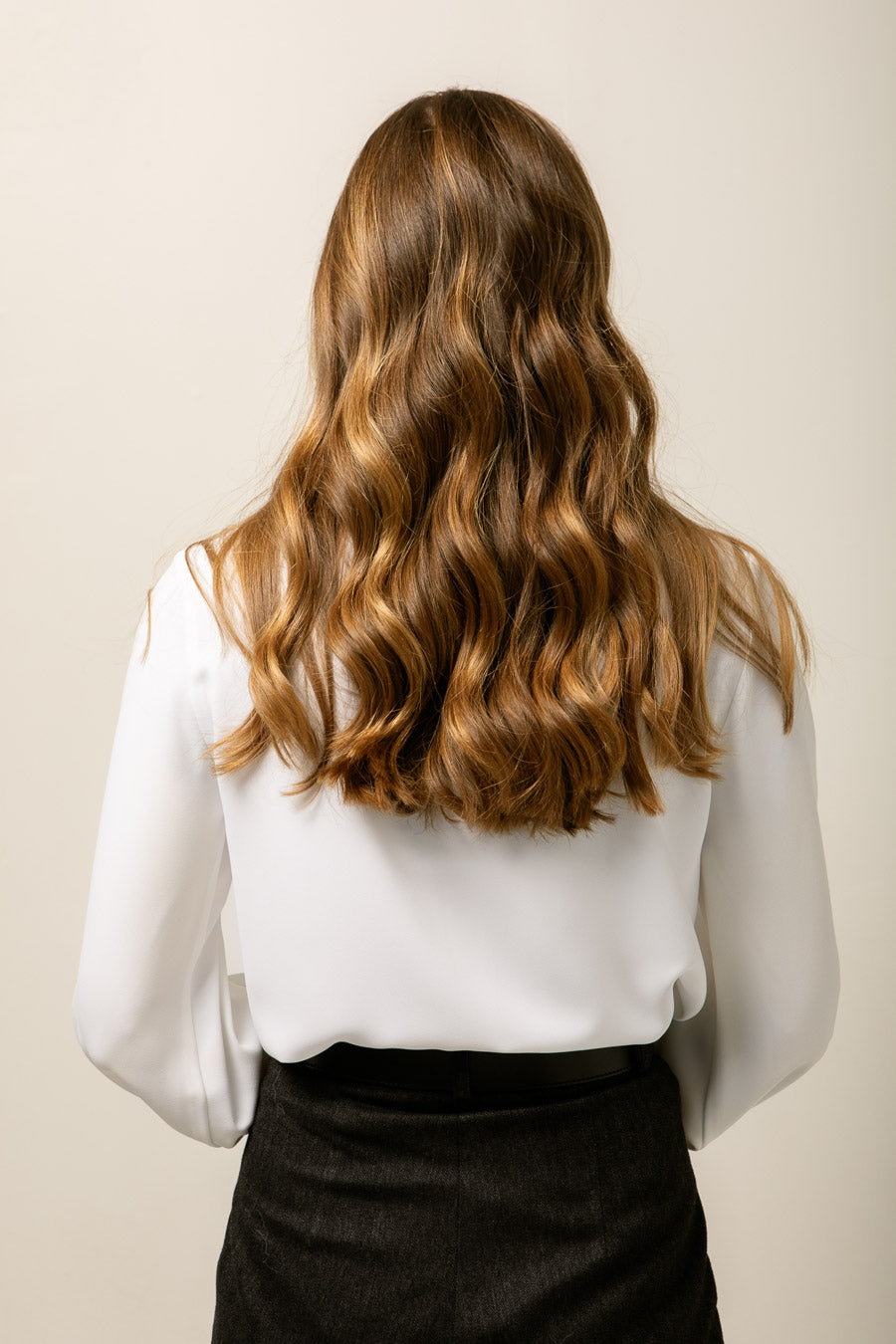 Camisa blanca con cuello solapa y manga larga acabada en puño. Bajo simétrico. Cierre frontal con botones.