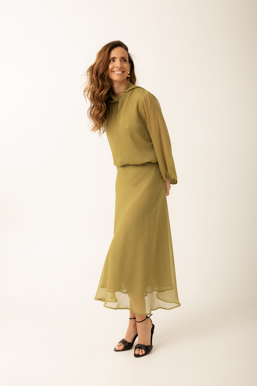 Explora la sofisticación y el encanto de la Falda Lerici, una pieza que redefine la elegancia. Confeccionada en España, esta falda midi destaca por su delicado plisado que añade un movimiento fluido y femenino a tu estilo. Su tono verde oliva, uno de los colores más buscados de la temporada, ofrece una versatilidad incomparable, permitiéndote crear combinaciones para cualquier ocasión.
